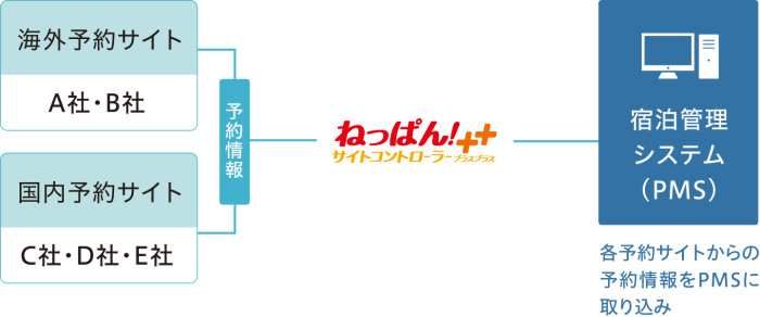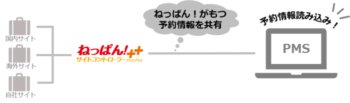 ねっぱん!サイトコントローラーで管理している予約情報を、宿泊管理システム(PMS)が取り込みます。