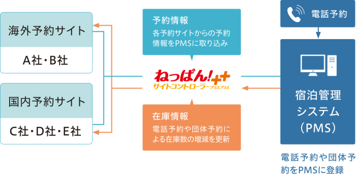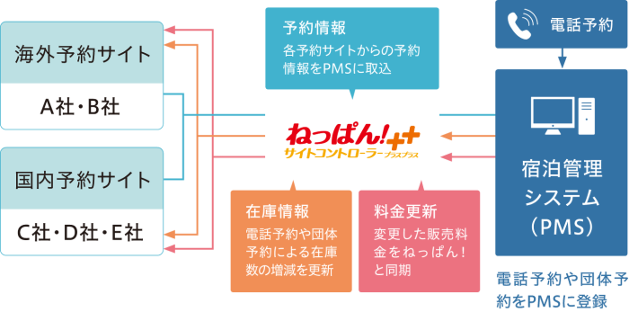 ・電話予約を登録する際、PMS(宿泊管理システム)に入力するとねっぱん!サイトコントローラーに在庫情報が反映される