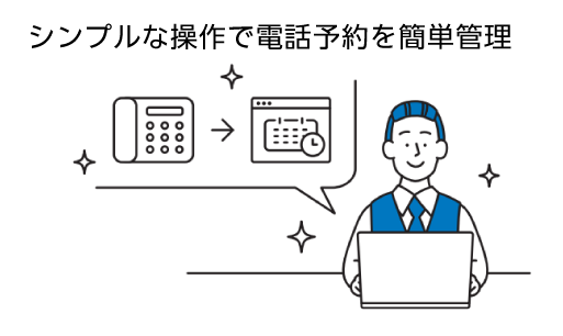 電話予約が確定したタイミングですぐに予約登録ができるように、1クリックで登録画面が表示されます。登録までのオペレーションが簡略化され、誰でも手軽に操作できます。